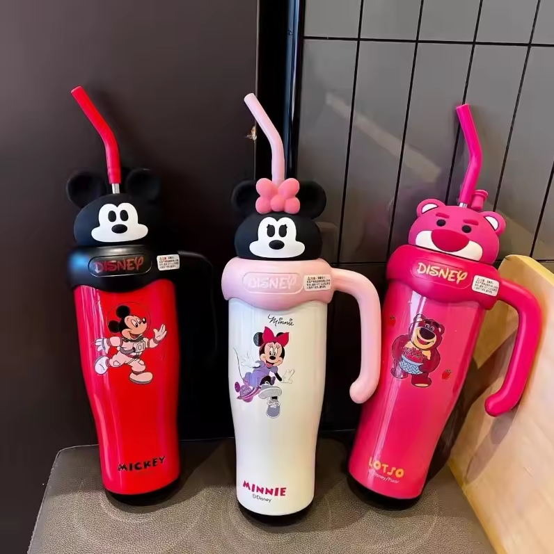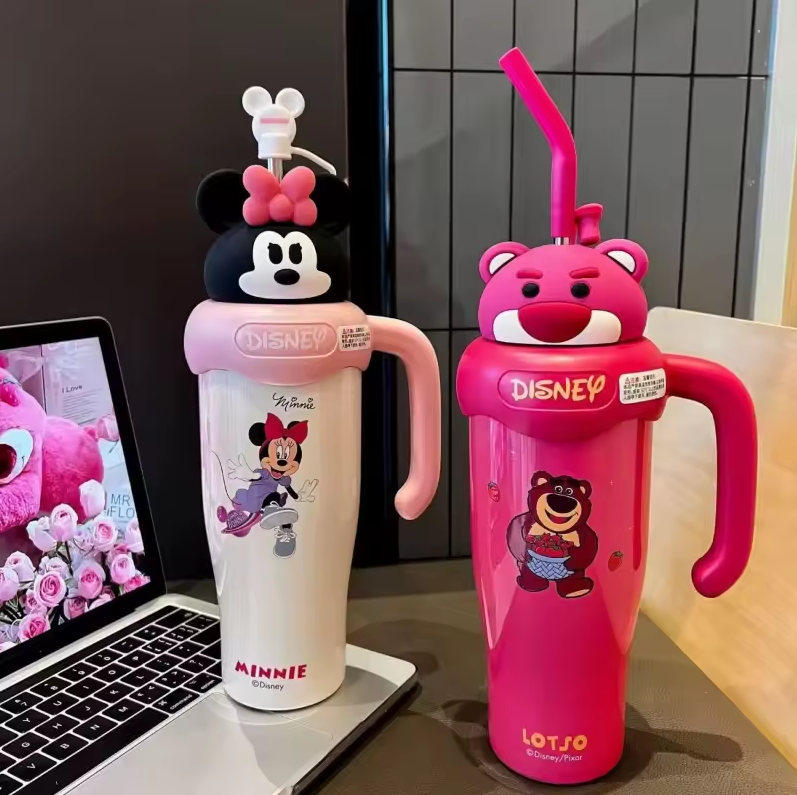 Imported 800ml Disney Cute Cartoon Lotso Mickey Minnie Large Capacity Tumbler 316 Stainless Steel Beautiful Tumbler for Kids and Girls A Lovely Birthday Gift
