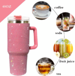 Be the first to review “Imported Shiny Stone 40oz Stainless Steel Insulated Tumbler with Handle, Leakproof Lid and Straw, Portable Tumbler for Car, Birthday Gift Tumbler for Girls”
