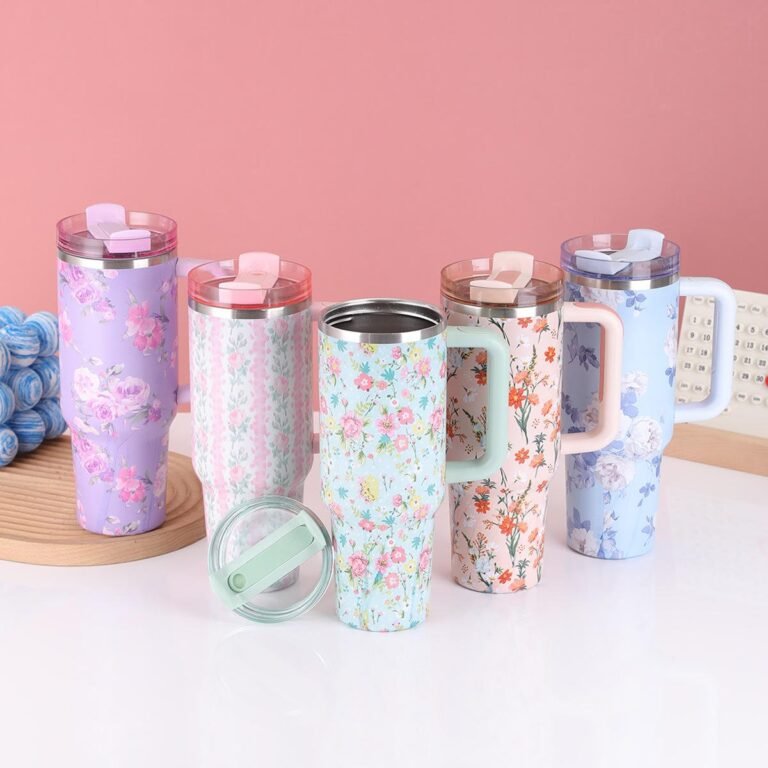 Imported 40oz Stainless Steel Insulated Floral Tumblers with Handle, Leakproof Lid and Straw, Portable Tumbler for Car, Home, Office, Birthday Gifts Tumbler for Girls